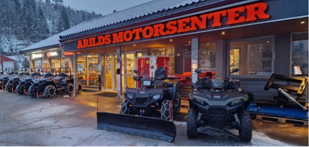 Kort sagt: Avdeling Brokelandsheia er Arilds Motorsenter sitt ansikt utad langs E18, med fokus på salg og service av ATV, snøscootere, tilhengere og hagemaskiner.