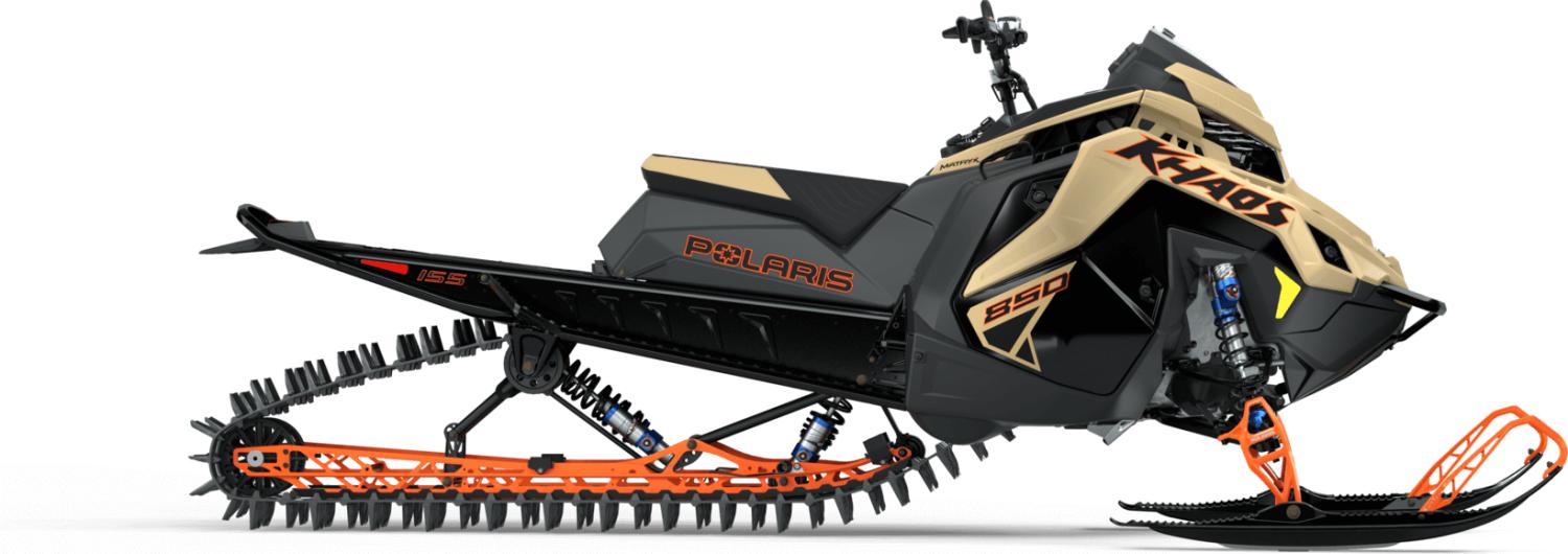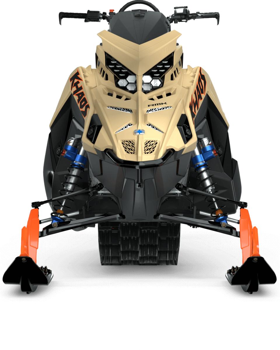 RMK Khaos Slash gir ultimat smidighet og kjøreglede. Verdens beste all-mountain snøscooter har en kort, konisk tunnel og lett design, med den høye ytelsen 850 Patriot og 155″ belte for smidighet og dynamisk respons i ethvert terreng.