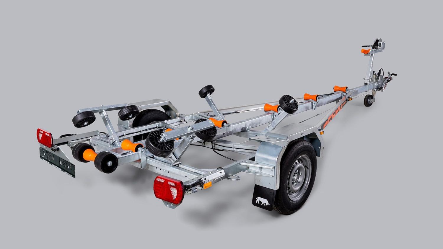 (1350V651T209) Skjermer og andre komponenter er I høykvalitetsstål med belegg i Magnelis®, som er 3 ganger mer motstandsdyktig mot korrosjon enn vanlig stål som brukes. Tippvoggen bakerst guider båten slik at den treffer mest mulig skånsomt og riktig når du vinsjer båten av og på. Kjølruller og justerbare sidestøtter hjelper båten til å ligge stødig og trygt på hengeren. Vår smarte og brukervennlige lampeløsning kan vippes ut ved behov.