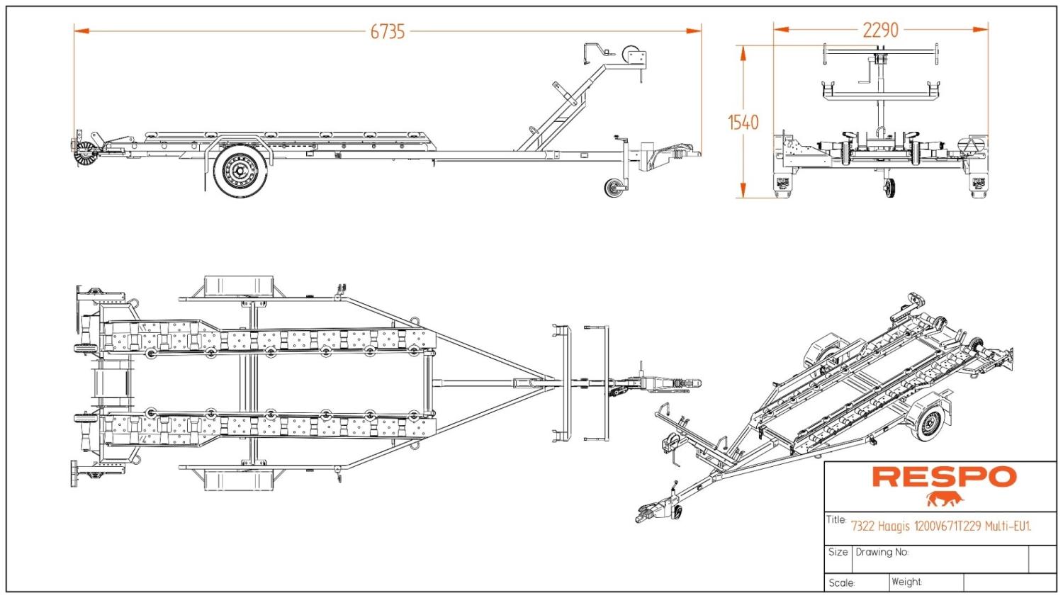 (1350V671T229) Spesialhenger til Pioner Multi III og Multi Pro III. Hengeren er skreddersydd til og konstruert for å håndtere det unike skroget på Pioner Multi III. En kraftig tippvogge bak hjelper med å styre båten riktig og trygtved sjøsetting og opptak av din Multi III båt. Respo 1350P Multi III er godkjent av Pioner Boat AS.