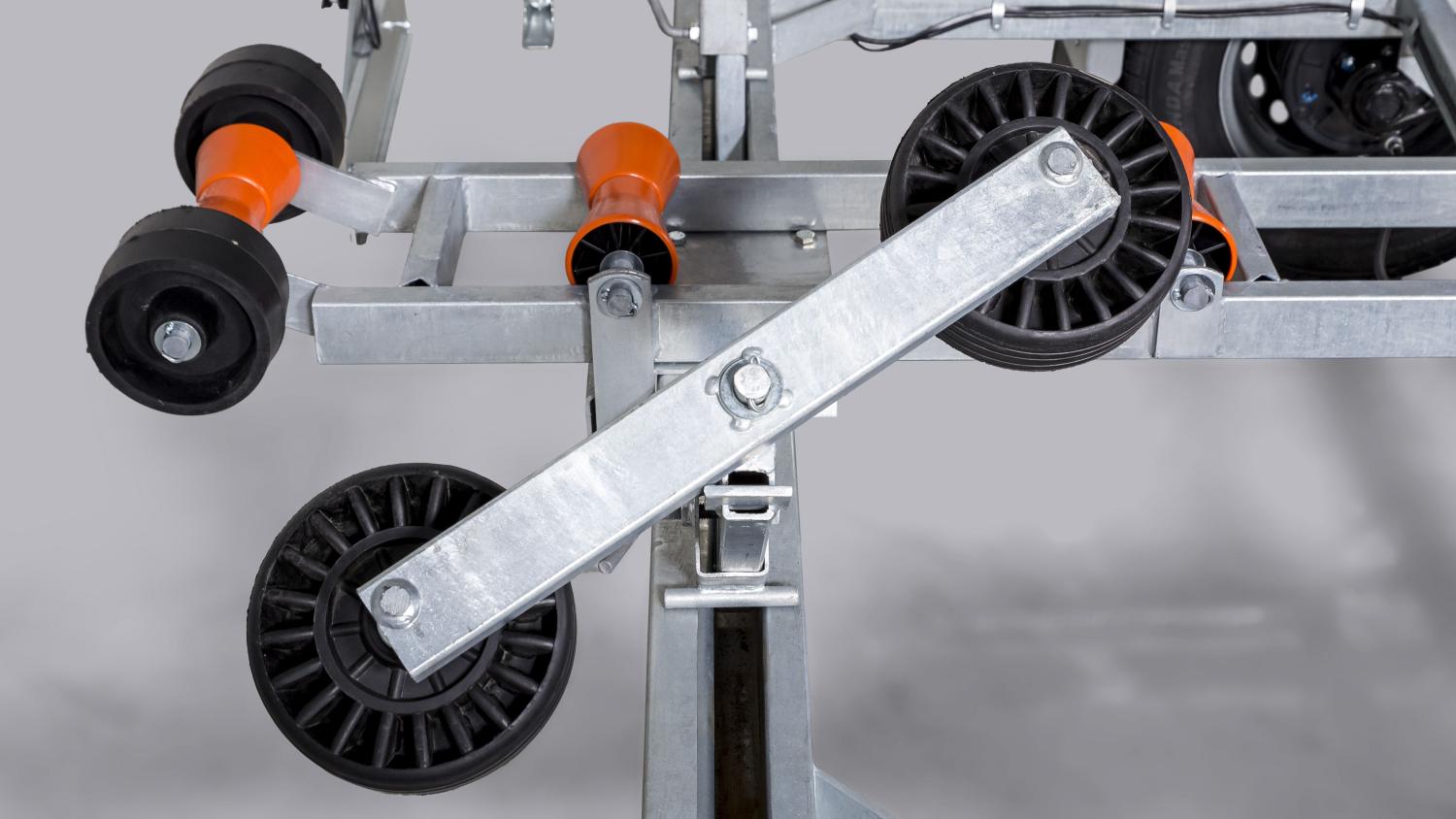 (1500V681T209) Skjermer og andre komponenter er I høykvalitetsstål med belegg i Magnelis®, som er 3 ganger mer motstandsdyktig mot korrosjon enn vanlig stål som brukes. Tippvoggen bakerst guider båten slik at den treffer mest mulig skånsomt og riktig når du vinsjer båten av og på. Kjølruller og justerbare sidestøtter hjelper båten til å ligge stødig og trygt på hengeren. Vår smarte og brukervennlige lampeløsning kan vippes ut ved behov.
