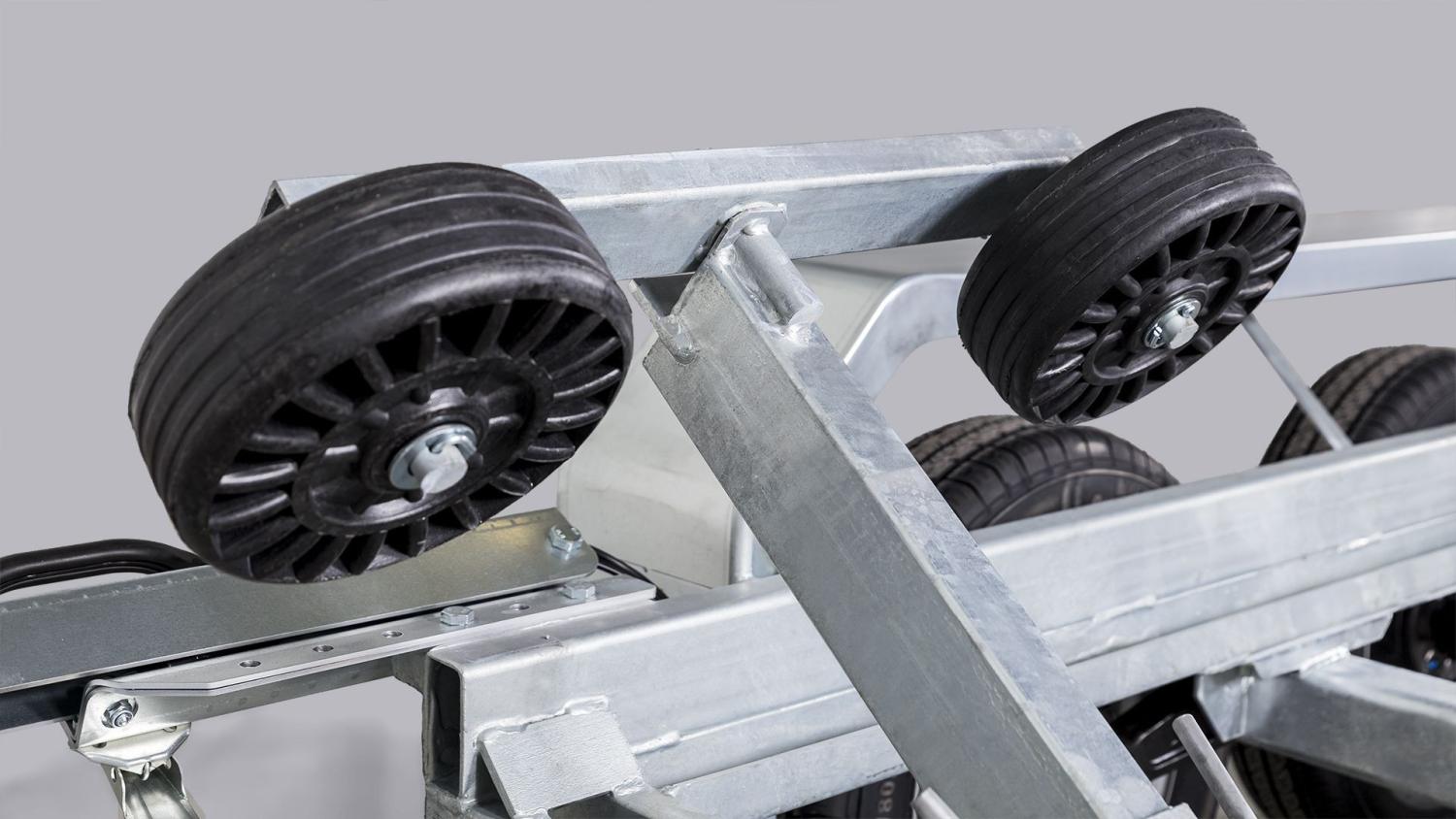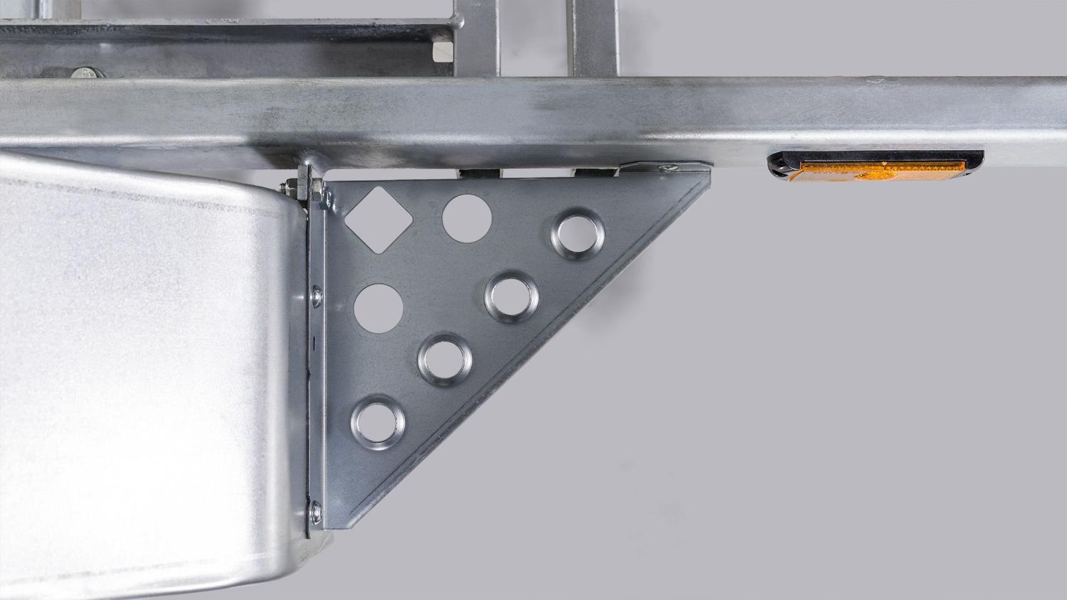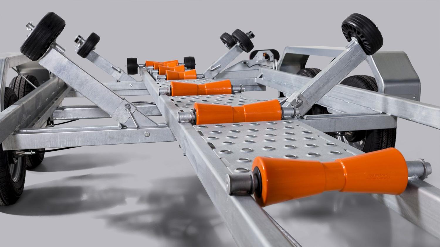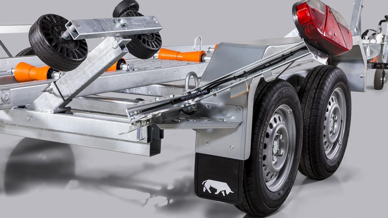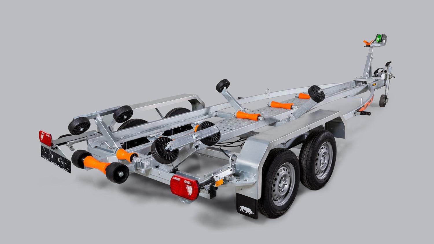 (1800V662T209) Skjermer og andre komponenter er I høykvalitetsstål med belegg i Magnelis®, som er 3 ganger mer motstandsdyktig mot korrosjon enn vanlig stål som brukes. Tippvoggen bakerst guider båten slik at den treffer mest mulig skånsomt og riktig når du vinsjer båten av og på. Kjølruller og justerbare sidestøtter hjelper båten til å ligge stødig og trygt på hengeren. Vår smarte og brukervennlige lampeløsning kan vippes ut ved behov.