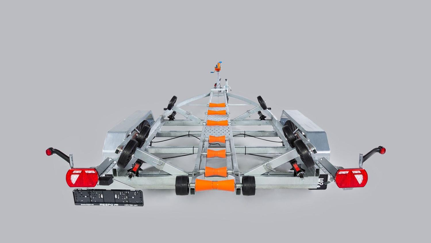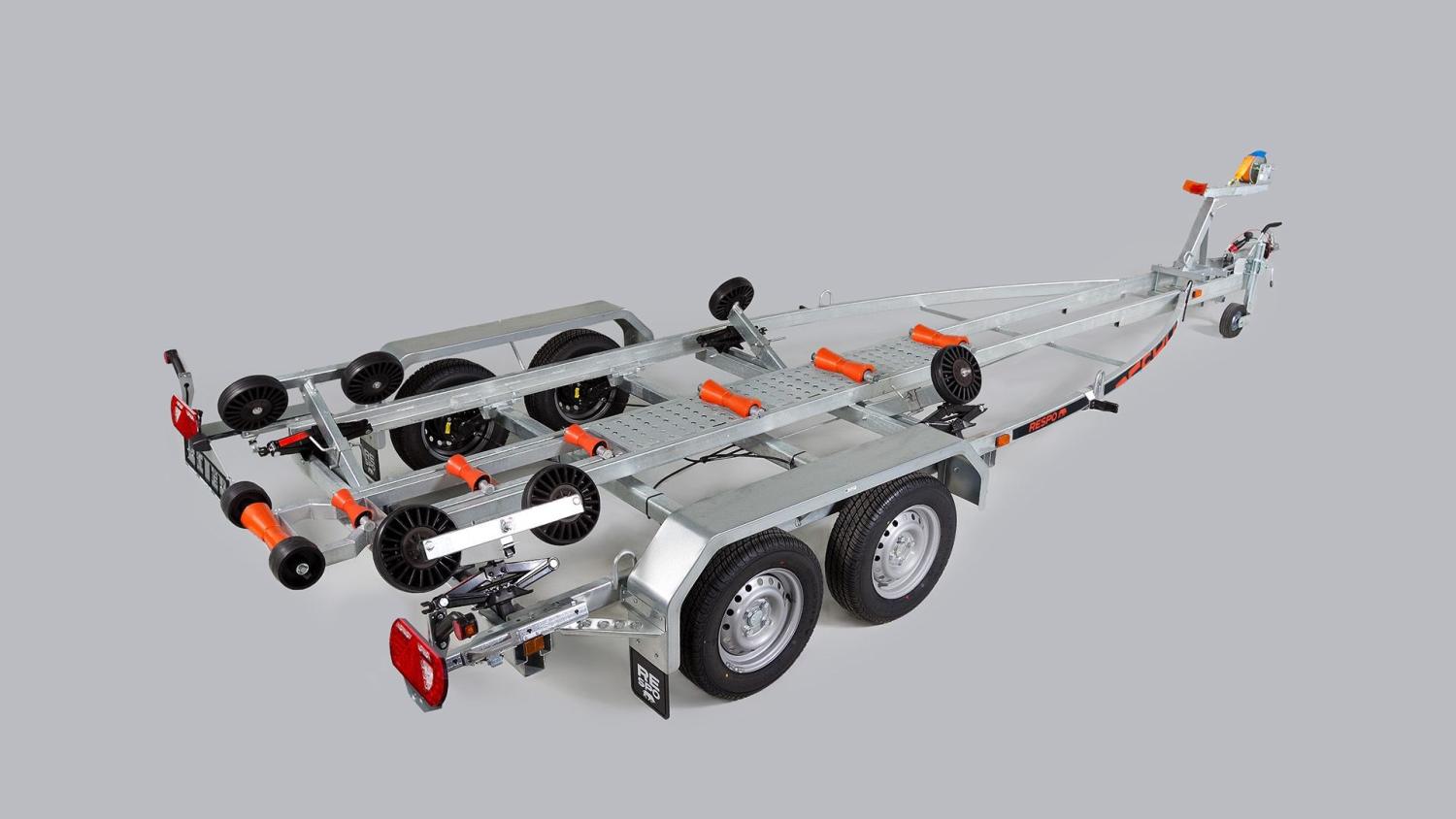 (2000V712T230) Skjermer og andre komponenter er i høykvalitetsstål med belegg i Magnelis®, som er 3 ganger mer motstandsdyktig mot korrosjon enn vanlig stål som brukes. Tippvoggen bakerst guider båten slik at den treffer mest mulig skånsomt og riktig når du vinsjer båten av og på. Kjølruller og justerbare sidestøtter hjelper båten til å ligge stødig og trygt på hengeren. Vår smarte og brukervennlige lampeløsning kan vippes ut ved behov.