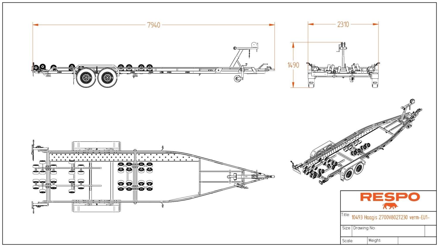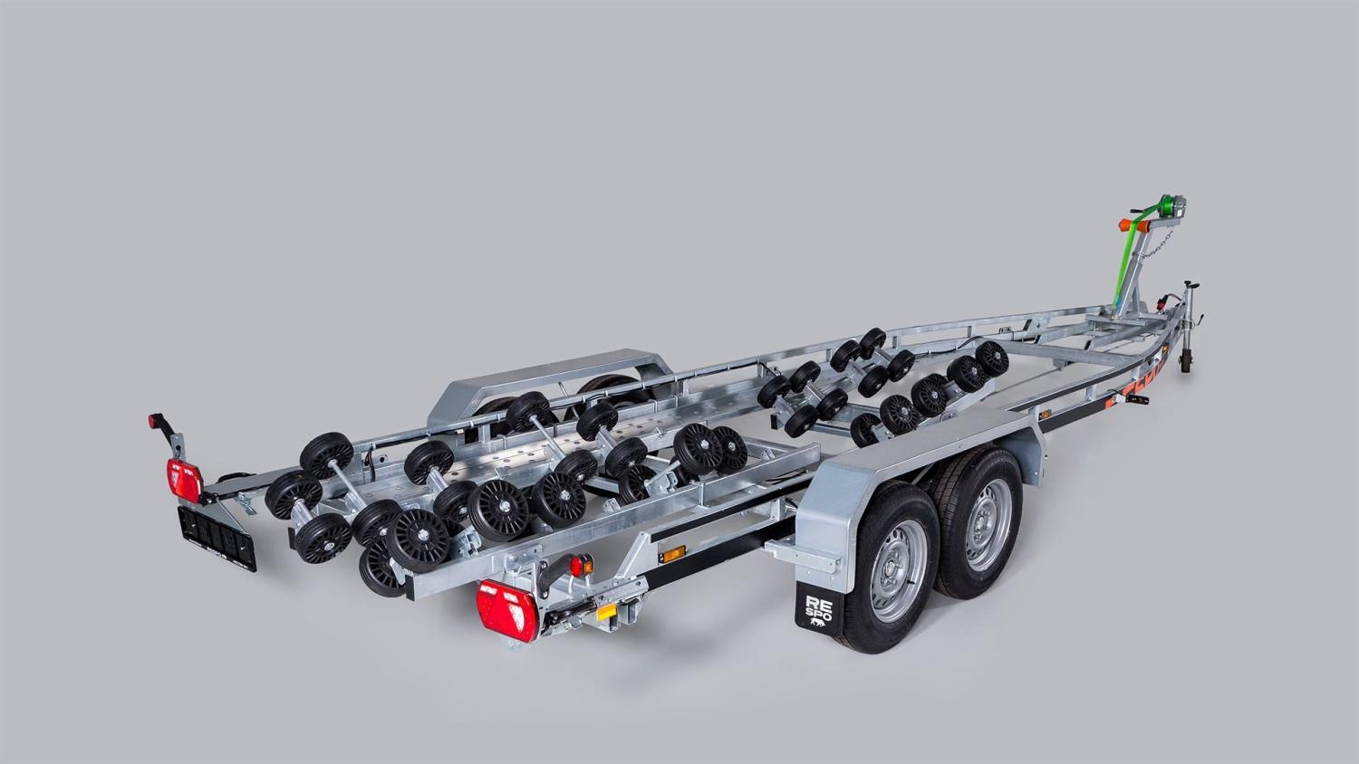 (2700V802T230) Innovativ Multiroller-henger med selvregulerende ruller som sikrer jevn og trygg gang på hengeren under båtopptak og utsetting. Hengeren har en solid varmgalvanisert og helsveiset stålramme. Skjermer og andre komponenter er i høykvalitetsstål med belegg i Magnelis®, som er 3 ganger mer motstandsdyktig mot korrosjon enn vanlig stål som brukes. Alle større hengerene i MR serien har justerbare akslinger som kan flyttes slik at kulevekten kan justeres og tilpasses.