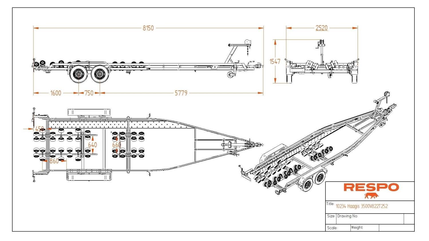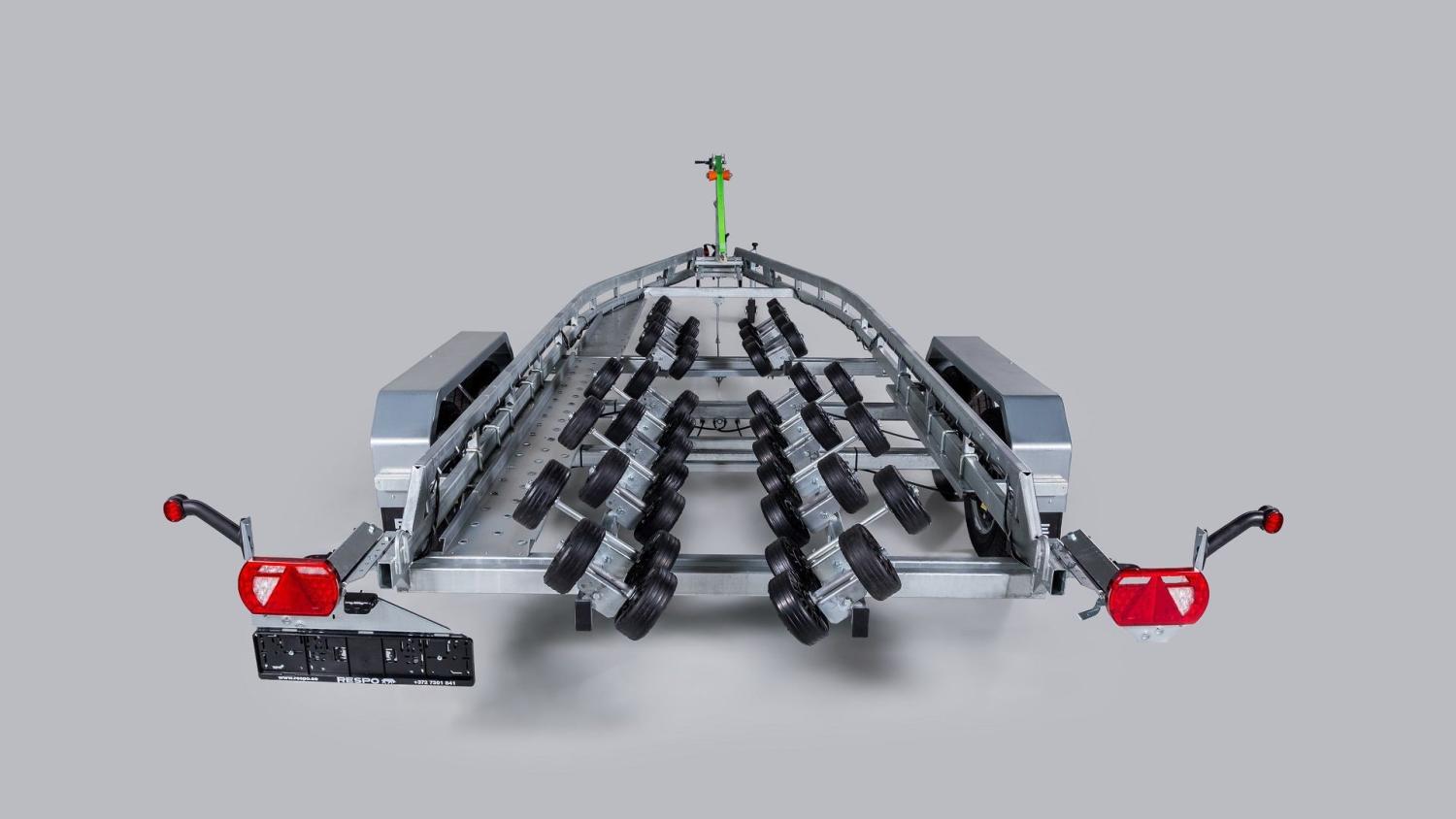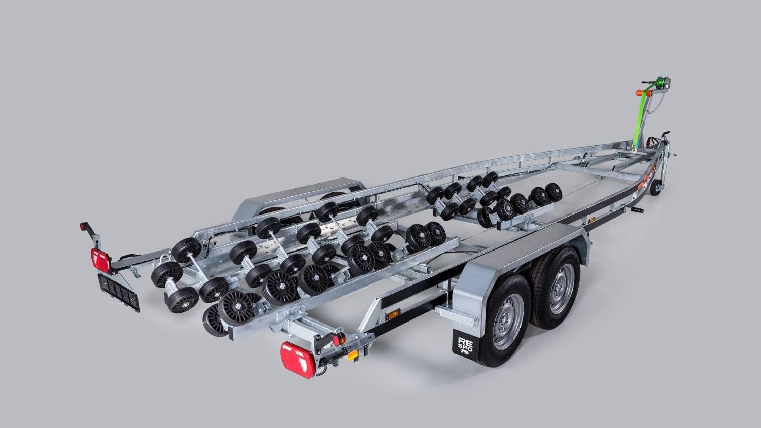 (3500V822T252) Innovativ Multiroller-henger med selvregulerende ruller som sikrer jevn og trygg gang på hengeren under båtopptak og utsetting. Hengeren har en solid varmgalvanisert og helsveiset stålramme. Skjermer og andre komponenter er i høykvalitetsstål med belegg i Magnelis®, som er 3 ganger mer motstandsdyktig mot korrosjon enn vanlig stål som brukes. Alle større hengerene i MR serien har justerbare akslinger som kan flyttes slik at kulevekten kan justeres og tilpasses.