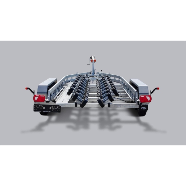 Vår flaggskip båthenger! Denne multirullehengeren med tre aksler og en ultrasterk, galvanisert ramme er designet for ekstreme forhold. Akselposisjonen er justerbar for å finne riktig tyngdepunkt, og det selvjusterende rullesystemet sikrer en mye jevn nere og tryggere av- og pålasting av båten. På grunn av fraværet av kjølruller er denne hengeren også egnet for båter med ikke-standard skrog.