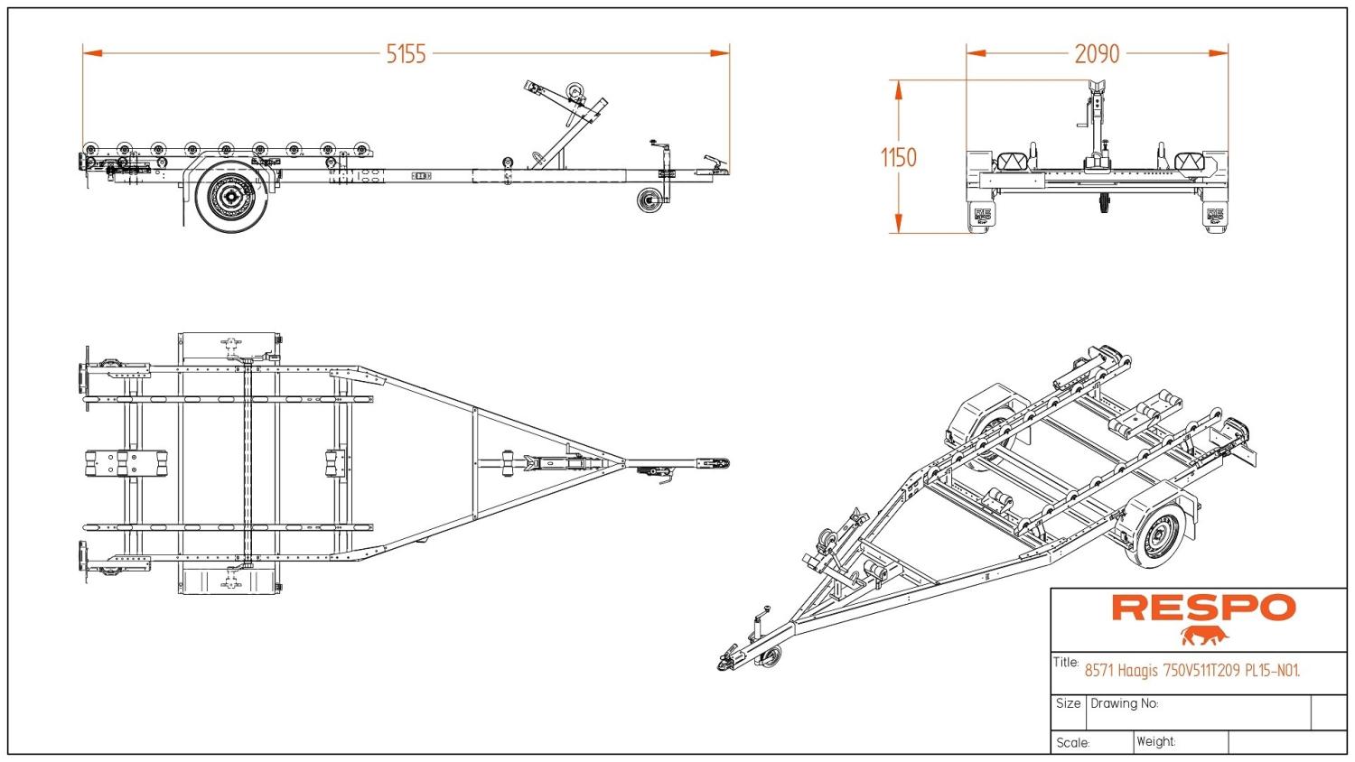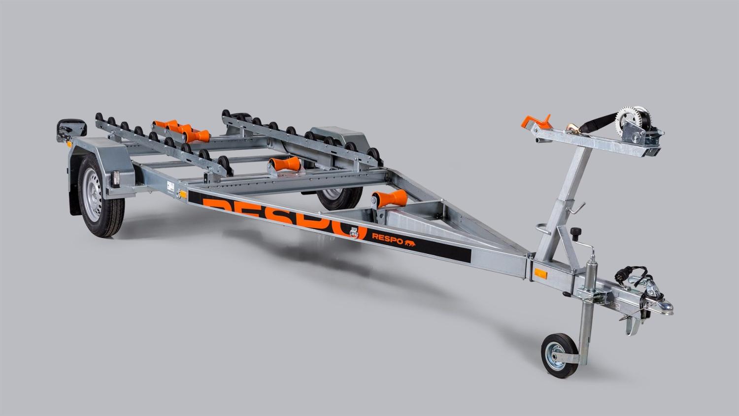 (750V511T209) Denne ubremsede hengeren har rulleskinner som lett kan tilpasses til båter som Pioner 13, Pioner 14 og Pioner 15 Allround ved å justere høyden og bredden på rulleskinnene. Respo sine båthengere for pioner er godkjent av Pioner Boat AS. Også egnet for andre rotasjonsstøpte båter (River 420/460).
