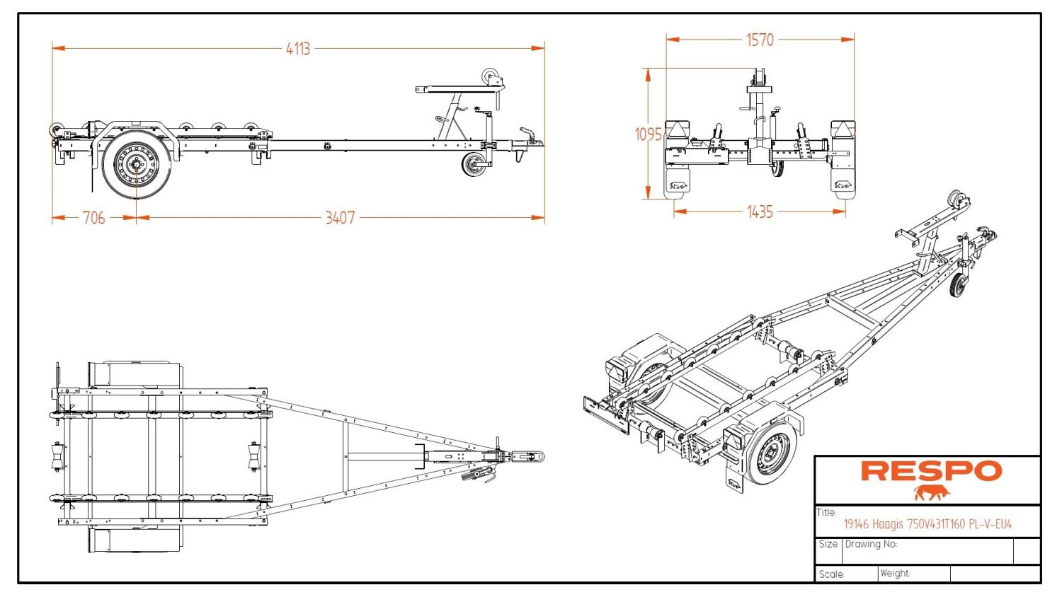 (750V431T160) 750RS RIB-modellen er et utmerket valg hvis du trenger en henger til et bredt utvalg av RIB-båter på markedet eller en Pioner 11 Easy.Rulleskinner gir den jevne og gode støtten som din Pioner-båt trenger, både under sjøsetting, opptak, kjøring og lagring.