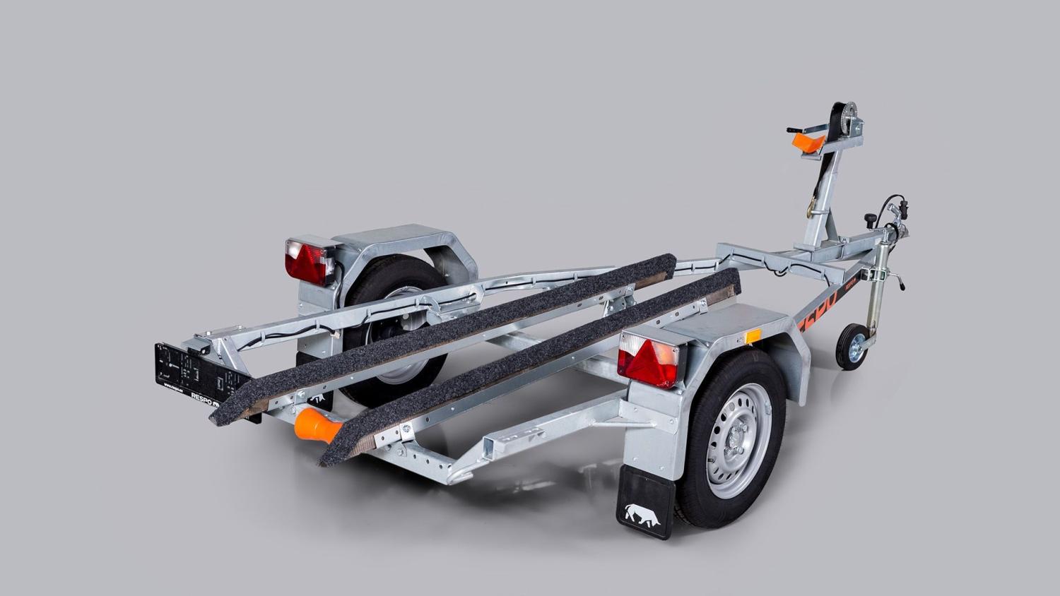 (750V391T160) Vannscooterhenger med en solid varmgalvanisert og helsveiset stålramme. Skjermer og andre komponenter er I høykvalitetsstål med belegg i Magnelis®, som er 3 ganger mer motstandsdyktig mot korrosjon enn vanlig stål som brukes. Skinner som kan justeres og tilpasses til dine behov. Vinsj som gjør det enkelt å ta av og på vannscooteren.