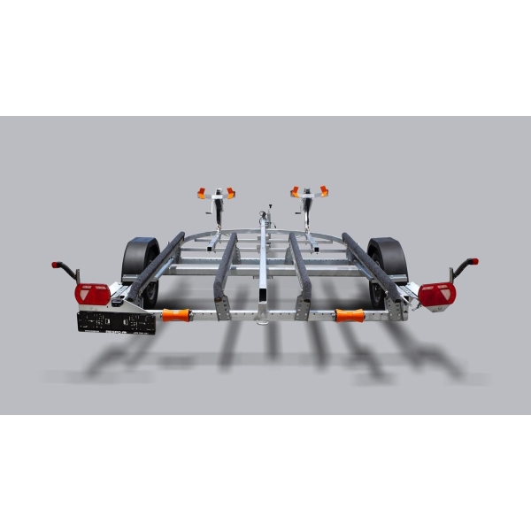 (750V501T255) Ubremsed vannscooterhenger med en solid varmgalvanisert og helsveiset stålramme. Skjermer og andre komponenter er I høykvalitetsstål med belegg i Magnelis®, som er 3 ganger mer motstandsdyktig mot korrosjon enn vanlig stål som brukes.Skinner som kan justeres og tilpasses til dine behov. Vinsj som gjør det enkelt å ta av og på vannscooteren.