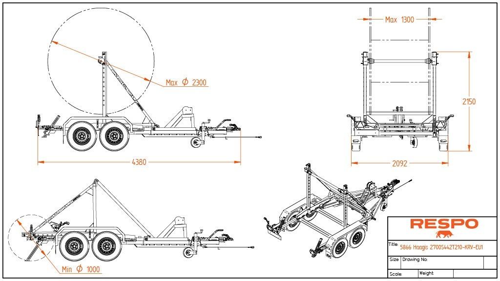 RESPO RC 4427 Kabeltrommelhenger m/brems