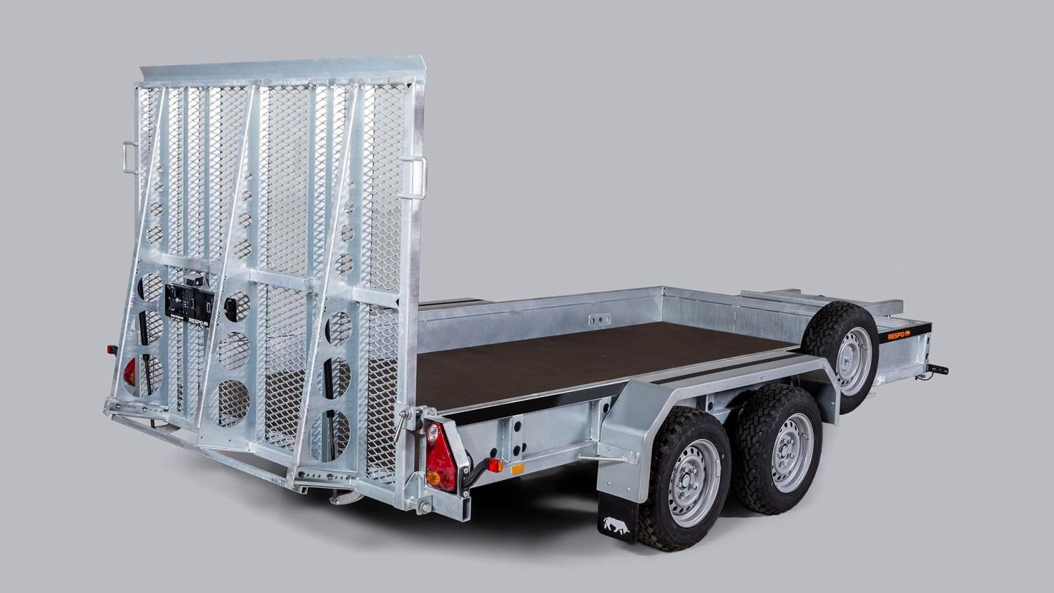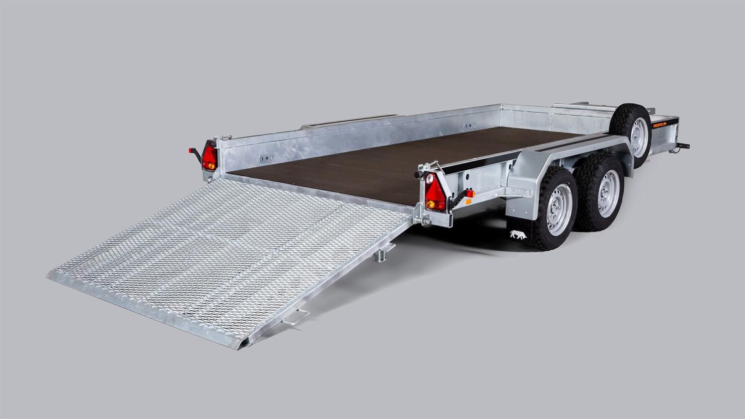 (3500S382T180) Arbeidsvogn for de tyngre oppgavene. Helsveiset bakre rampe gjør det enkelt å laste minigravere og andre arbeidskjøretøyer. Stor lastevekt og praktiske lastdimensjoner gjør denne tilhengeren til et førstevalg blant mange entreprenører.