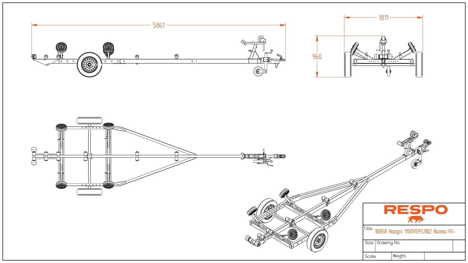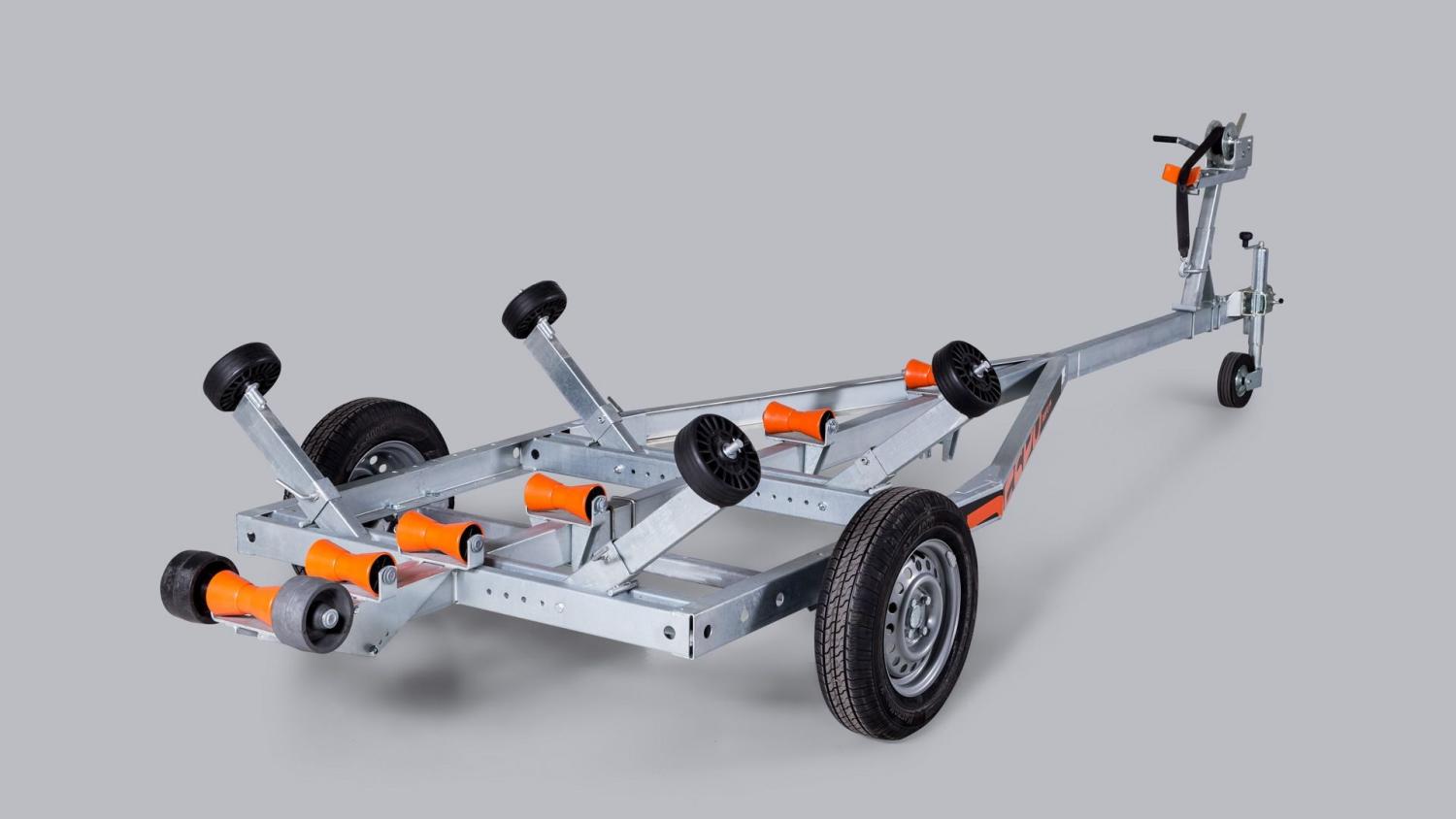 (1350V591J182) Solid varmgalvanisert og helsveiset stålramme. Kjølruller og justerbare sidestøtter hjelper båten til å ligge stødig og trygt på hengeren. Opplagshengere har ikke fjæring, skjermer eller lys og kan ikke kjøres på offentlig vei.