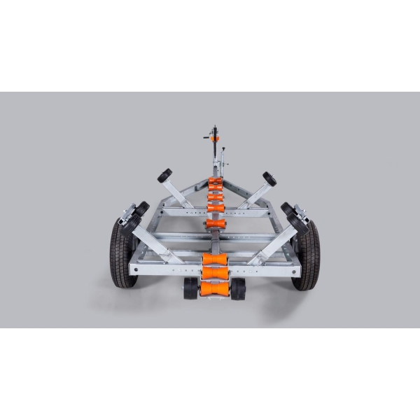 (1800V651J182) Solid varmgalvanisert og helsveiset stålramme. Kjølruller og justerbare sidestøtter hjelper båten til å ligge stødig og trygt på hengeren. Opplagshengere har ikke fjæring, skjermer eller lys og kan ikke kjøres på offentlig vei.