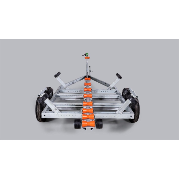 (2400V682J210) Solid varmgalvanisert og helsveiset stålramme. Kjølruller og justerbare sidestøtter hjelper båten til å ligge stødig og trygt på hengeren. Opplagshengere har ikke fjæring, skjermer eller lys og kan ikke kjøres på offentlig vei.