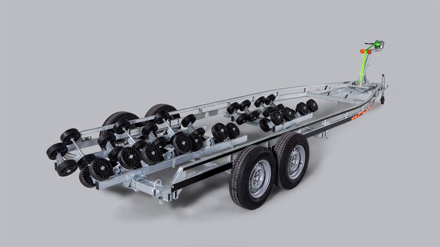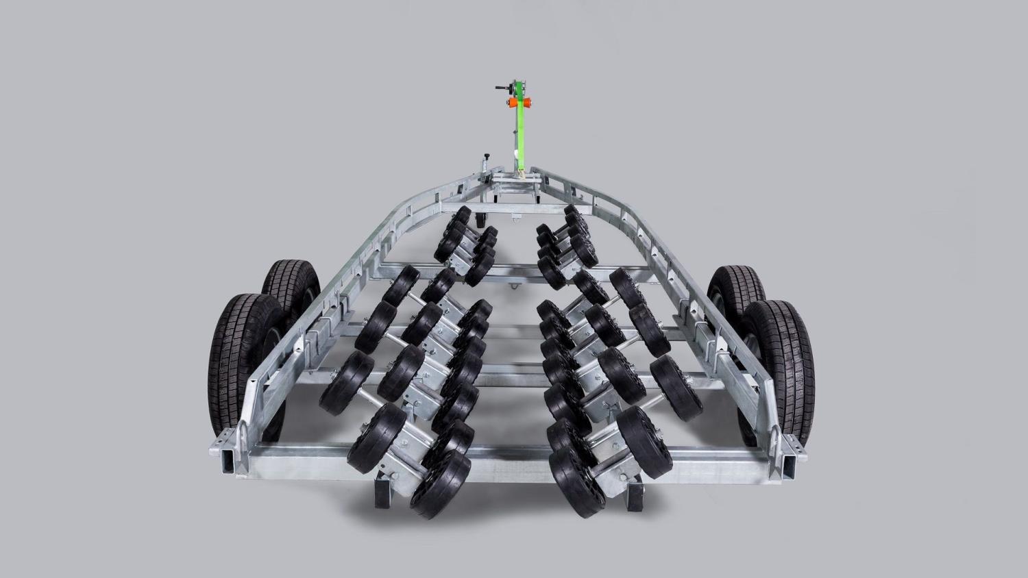 (4200V792J230) Solid varmgalvanisert og helsveiset stålramme. Utstyrt med vårt MultiRoller system med hele 44 ruller. Opplagshengere har ikke fjæring, skjermer eller lys og kan ikke kjøres på offentlig vei.
