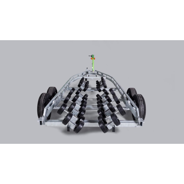 (4200V792J230) Solid varmgalvanisert og helsveiset stålramme. Utstyrt med vårt MultiRoller system med hele 44 ruller. Opplagshengere har ikke fjæring, skjermer eller lys og kan ikke kjøres på offentlig vei.