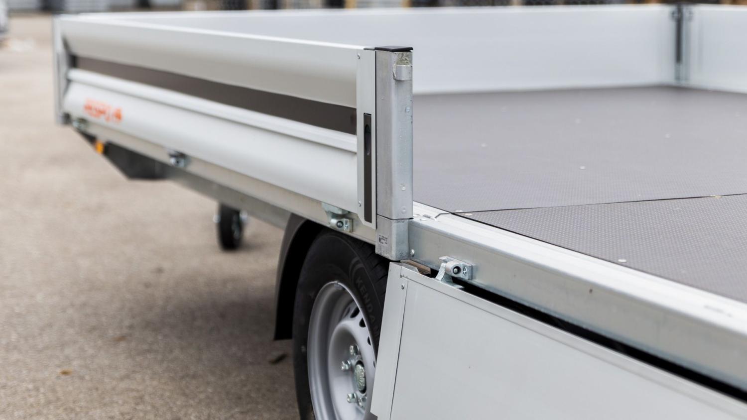 (2700P552T225) Med en ekstremt solid og holdbar varmgalvanisert (HDG) sveiset ramme og lette, men robuste aluminiumssider, samt front- og bakluker. Den doble torsjonsfjæringen gir enestående pålitelighet. I tillegg til vanntetting er bunnen dekket med et sklisikkert belegg. Sidene, front- og baklukene kan enkelt åpnes og fjernes, noe som gir praktisk lastemulighet fra alle sider.