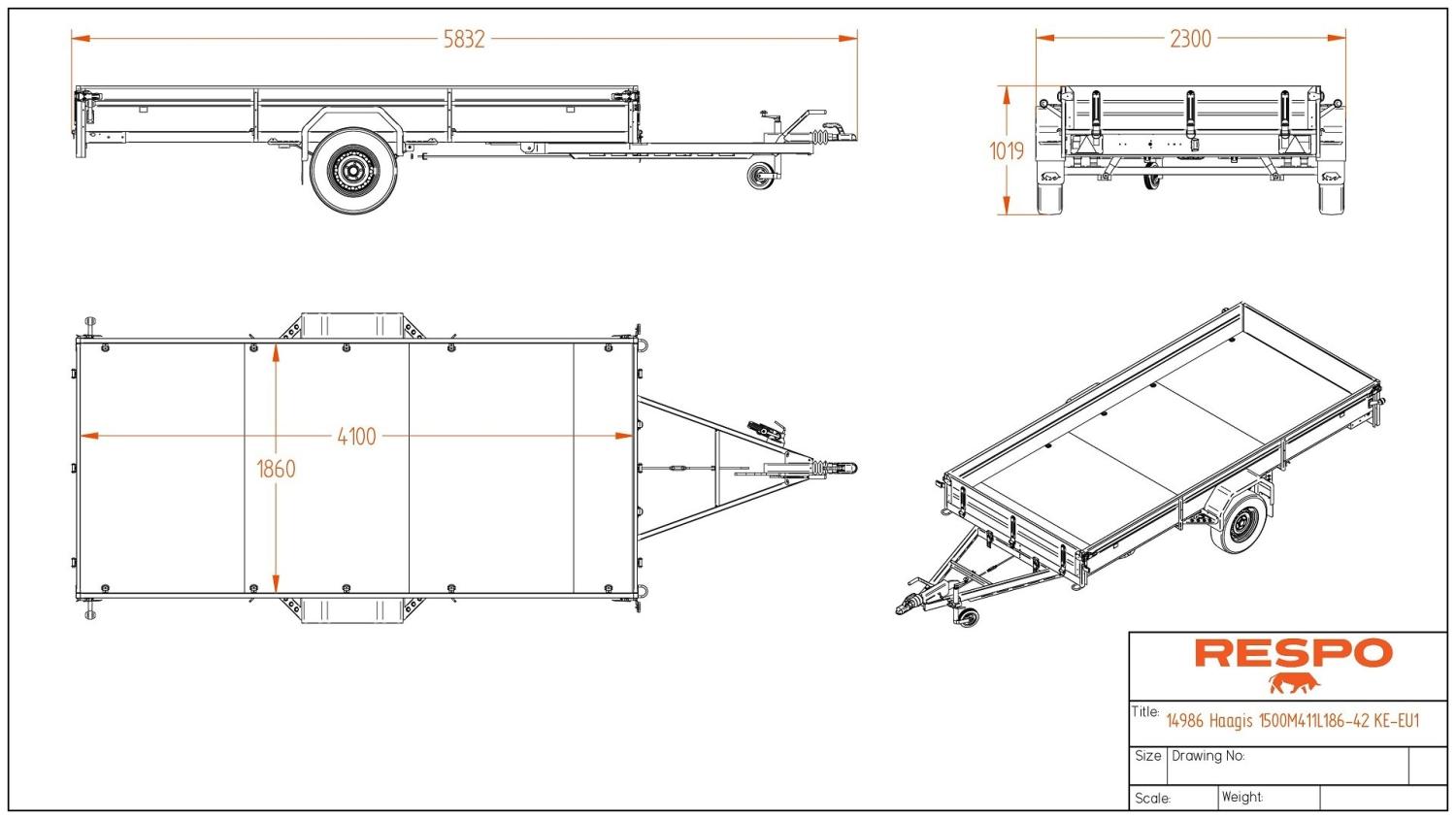 (1500M411L186) Takket være sin praktiske størrelse og allsidige egenskaper har denne hengeren mange bruksområder. Den brukes ofte til transport av mindre kjøretøy, men håndterer også alle typer tunge lass med letthet. Den har en sterk bladfjæraksel som gjør den enkel å trekke, spesielt på ujevne veier. Den kan utstyres med en tippeskrue, som gjør lasting og lossing enda enklere og mer effektivt.